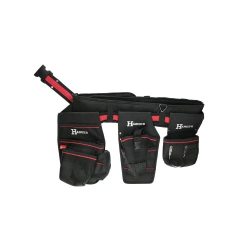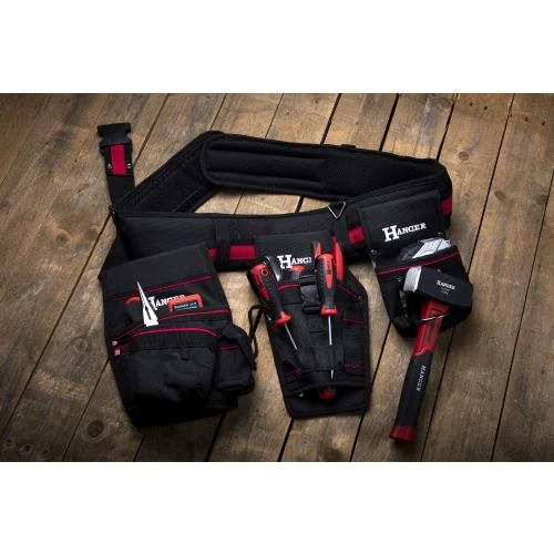 Ceinture porte outils polyestère. Doublage de la ceinture au niveau du dos. 16 poches de rangement. 1 porte marteau.