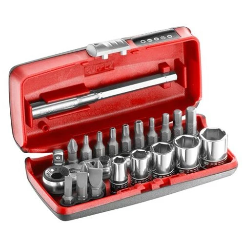 Ce coffret douilles 1/4” 6 pans métriques et embouts 23 pièces R1PICOPB est une composition d’instruments faite pour le serrage ou le vissage.