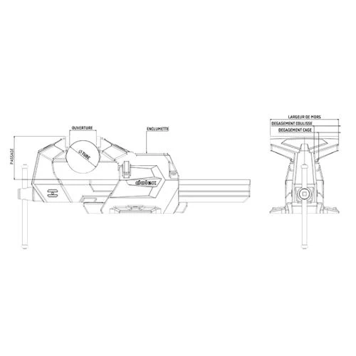 - Réglet de mesure sur la coulisse : lecture et réglage rapides de l’ouverture de l’étau et/ou de la course de serrage