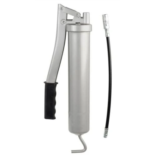 a pompe de graissage Pressol à levier standard permet d’utiliser des graisses jusqu’à la classe NLGI 2 à 20 °C. L’ajustage précis de la manchette sur le tube évite les fuites internes, la poignée ergonomique et les striures profondes favorisent une bonne prise en main. La conception optimale du levier permet également de réduire l’effort lors du pompage. Cette pompe de graissage bénéficie d’un fond amovible facilitant l’action du ressort, en augmentant l’effort de compression sur la graisse en vrac, et en simplifiant l’insertion de la manchette dans des cartouches déformées. De plus, pour un bon fonctionnement, elle purge de l’air par une rotation d’un demi-tour du corps de la pompe et reste performante même après 40000 cycles.
